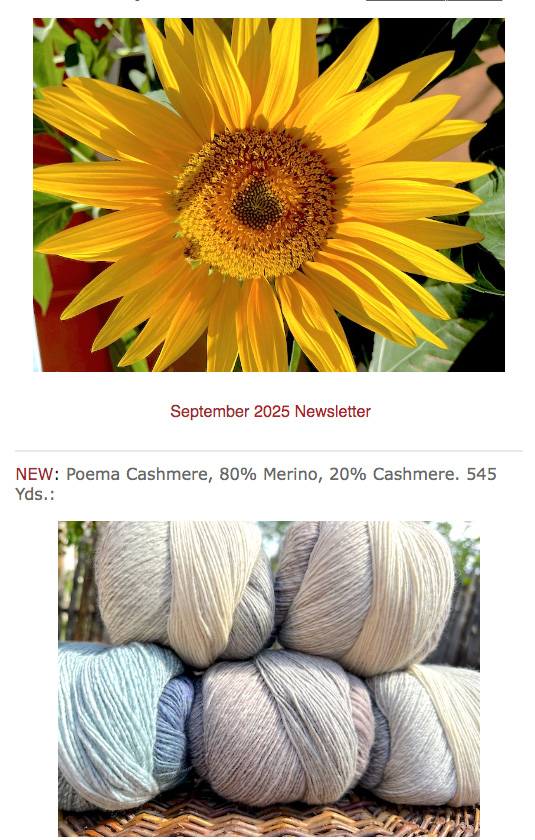 I carry the up-to-date most beautiful natural fibers on the market: Cotton, Linen, Silk, Alpaca, Wool and a variety of blends. Leclerc Looms and Ashford Spinning Wheels provide all the tools, you need to spin, weave or knit your dream.